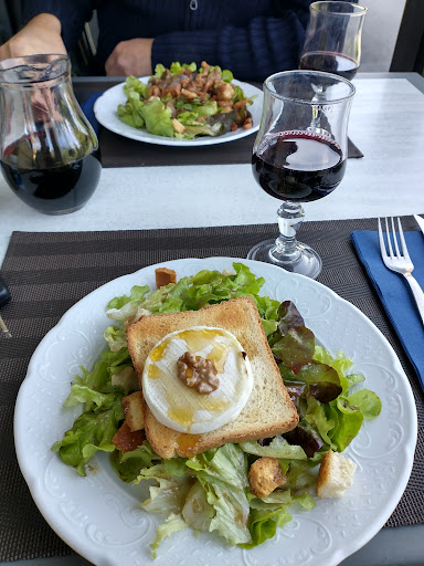 We received such a smiley, friendly welcome when we popped by for a drink, that we decided to eat here later in the week. Again, we were greeted warmly and both hosts were polite and chatty. We started with millefeulle tomatoes with mozzarella, this was finely sliced beef tomatoes with slices of herbed mozzarella, thank goodness we had one to share as the portion of two tomatoes and two little salads would have been too much for one! My lamb shank came with a little basket of sauté potatoes and vegetable terrine and a separate jug of rosemary infused jus. The lamb was tender and needed no cutting and the jus was irresistible. My husband had the pork fillet with the same veg and a pot of mushroom sauce. We both thoroughly enjoyed the meal. Ice cold water was available, as was fresh bread. Including three large beers and a glass of white wine the whole meal came to 60 Euros. Excellent value for a super meal. Well worth a visit and would definitely recommend to anyone on holiday in...