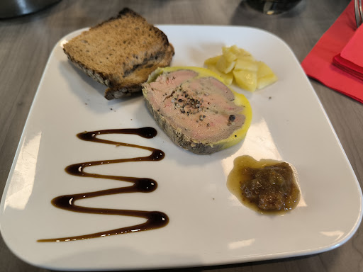 Read moreMangé ce midi deux formules à 23 € entrèe foie gras, deux magret roses, pommes sarladaises et deux mousses au chocolat un pichet de vin ,50 € Je n'aime pas mettre un avis négatif par respect pour les personnes qui travaillent mais quand même un minimum pour respecter les clients quand on fait un peu de cuisine en professionnel mais je m'aperçois que mes réserves sont partagé par certains. Faire des pommes sarladaises molles comme à la cantine c'est quand même pas admissible même si on ne peut pas mettre de cèpes à ce tarif là . La tranche de foie gras était insipide et le magret noyé de sauce ????vraiment pas cuit et caoutchouteux ça doit pas être du canard de concours ... La table a côté avec son entrecôte nerveuse baignant dans la sauce pas enthousiaste non plus vu les effort du monsieur pour la découper et ce qui est reste dans son assiette, la table derrière mêmes réflexion !!! y aurait t'il un problème avec le menu?? point positif la serveuse assez aimable et efficace un placement agréable à côté du musée le vin très correct et la mousse au chocolat excellente c'est juste apporter un peu de soins pour la finition des plats sinon restau à touriste a éviter si l'on veut goûter de la cuisine...