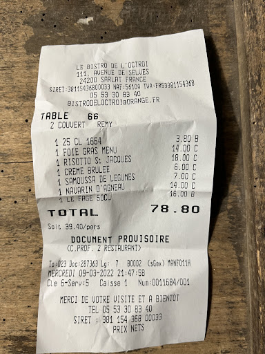 Read moreWe knew we would be arriving later in the evening at Sarlat, from a long trip from Denver, Colorado, so, to ensure we would get a meal that evening, we made a reservation with the restaurant at 2000 hrs on 27 April, and verified by email. We were excited to arrive at the restaurant on time on a very rainy evening. To our surprise, we were denied, said we didn’t have a reservation, so we produced the email, and the person helping us, must have been the owner, agreed that it was a valid reservation, but he still turned us away. This review is not about there food quality nor the atmosphere, but about the turn away with a reservation, we counted on them for a meal after a long journey to get there, and walking through a rainstorm. We did our due diligence with a reservation and arriving at the scheduled time.Needless to say we went to bed without dinner.They were open and had tables available. We have been traveling to France since 2019 and have never had any problems with the proverbial rude French, which we have never seen before this, and hope never to see it...
