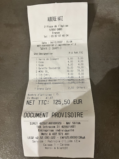 A l'addition, surprise. 9€50 de rajout pour des produits non consommés. Remboursement difficile avec des commentaires plus que douteux de la dite serveuse. (Photo de l'addition, eau carafe facturée 4€, supplément surprise.) Bien mangé, malgré le menu imposé. Le service en salle étant un métier à part entiere, nous considérons plus que mauvais la façon dont nous avons étés reçus, encore plus au vue des prix instaurés. 130€ pour 3 alors que personne n’a mangé ce qu’il voulait…...