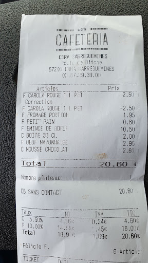 Read moreTrès déçu lundi pas de grill que pizzas...vacances?pas envie de venir travailler ou nouvelle politique carrefour ?j'ai mieux connu cora je dis ça je dis rien deux personnes employées c'est malheureux mais que se passe-t-il ?ce n'est plus du tout l'endroit que j'aimais quand je suis de passage c'est de pire en pire j'ai lu les commentaires embauchez avec tout les chômeurs de cette ville ça ne devrait pas être dur brèf je donnerais mes sous ailleurs à...