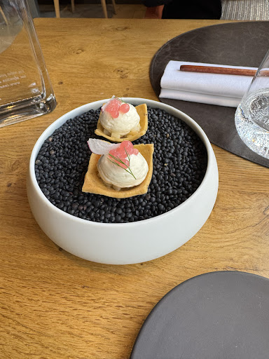 Das Essen ist der Hammer! Der regionale und vor allem der saisonale Bezug finden wir riesig (leider in vielen hochwertigen Restaurants kein Standard) - auĂerdem sehr kreative Ideen und Zusammenstellungen der einzelnen Komponenten, Zutaten und GewĂŒrze. Besonders beeindruckt hat uns, dass hier nicht versucht wird mit starkem Geschmack und Fokus auf Umami zu punkten. Nein: Der KĂŒchenchef komponiert seine Gerichte extrem feinsinnig und versucht den jeweils einzelnen Eigengeschmack hervorzuheben. Keine Komponente der einzelnen Gerichte steht im Vordergrund, sondern man hat ein extrem harmonisches Gesamterlebnis - auch auĂergewöhnliche und ĂŒberraschende Zusammenstellungen. Wir hĂ€tten sogar Fisch & Fleisch gar nicht benötigt (obwohl beides sehr sehr gut zubereitet und lecker war), weil uns die vegetarischen Gerichte und Komponenten noch deutlich mehr fasziniert haben (und wer selbst kocht weiĂ, dass das deutlich schwieriger ist und mehr KreativitĂ€t verlangt als bei Fleisch & Co.).