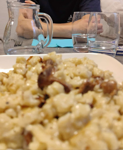 Read moreCadre très joli avec le lac derrière. L'intérieur est très agréable et propre, pas de problème là-dessus. Les serveurs sont agréables et le service raisonnable, aucun problème là-dessus. Les complications viennent presque entièrement au niveau de la cuisine. Je sors du lycée et la nourriture me rappelle un peu trop la nourriture de ma cantine. En pire. Les spätzles "maison" directement sorties des machines de TriCatel, j'avais l'impression de manger du plastique sans aucun goût, la sauce relevant à peine le goût du plat. Les flams vides, avec une pâte carbonisée et aussi fine que de la dentelle. Une des grosses déceptions était la pizza où la même pâte industrielle que pour les flams était utilisée?? Jamais vu une pizza aussi pitoyable et qui ne nourrit presque pas. La viande et la sauce de la bouchée à la reine qui ont le goût de bouillon de volaille (celui super salé qu'on regrette avoir mis trop tard et qui n'a pas fondu...) La pizza banane-choco à 11€ où tu te void octroyé 3g de Nutella avec l'équivalent d'un demi-banane en tranches avec la MÊME pâte que flams et pizzas, donc sec et avec un mauvais goût d'industriel. Les cuissons des viandes, peu respectées mais fort heureusement assez bonnes. La crème brûlée est complètement froide donc probablement stockée au frais déjà brûlées (donc quelque-peu décevant) mais est quand même très bonne et épaisse. Les desserts en général ne sont pas folichons (beaucoup de glaces industrielles) mais font le taf. Le beurre maître d'hôtel est délicieux par contre. Ça relève globalement du TRÈS moyen et absolument pas attendu d'un établissement de ce genre et avec des prix si hauts (19€ pour l'assiette de botox que sont les Spätzles et 20€ pour un cordon-bleu...). Donc pas à fuir mais bon, y a sûrement mieux...