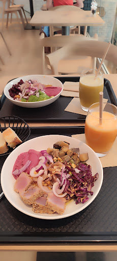 Nice and friendly staff, good coffee. We tried once their salad to go and compose yourself. Too expensive and not worth it at all. 24e for 2 salads… C’mon! Here are improvements that could be done : do not serve white rice but brown complete one. Same comment for the pasta. separating Tofu away from the chicken makes it confusing and misleading. Wsh dont you put protein all together? prices could be shown somewhere and explained to customers. You make it like subway but at least the show / explain their formula.