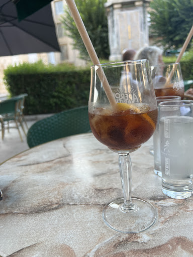 The atmosphere is nice and servers were friendly. So much so that we got conned into coming here three times. I know I know. The first night we had their cocktail of the day, which was ok, but as people say, quite a bit of ice. The next morning we tried the coffee. It was fine but the place next door is better and cheaper. Then tonight, because we had had a nice server, we ordered a capo spritz but it was some pathetic brown thing and not capo spritz at all. What a waste to come here on...