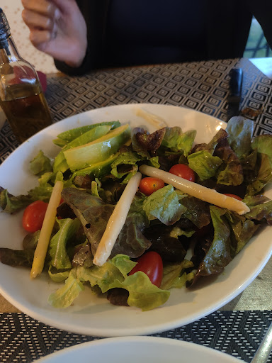 Nous commandons des pâtes au safran, ainsi qu'une salade végé complète. Les pâtes ? 4 morceaux réchauffés baignant dans l'huile. La salade ? Des asperges, olives et coeur d'artichaut en conserve, sans assaisonnement. Les avocats de la salade ? Absents, alors que la carte les mentionne dans la salade. Nous avons dû les redemander pendant le service, ce qui n'a pas manqué de déplaire ouvertement a notre aimable serveuse, et valu un souffle de pénibilité de la part de la "cuisinière". Quel culot.