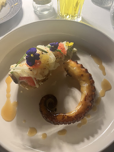 Read moreBeautiful view of the coast (unfortunately it was raining on the evening we visited so we didn't get the chance to sit on the terrace and enjoy it). As part of the hotel, the interior design is well considered. The service team were attentive and explained the dishes as presented. The food quality and high price didnt live up to the standard of the view or service.. We had the ceviche and courgettes to start and veal and grouper replacement (Porgy). The veal was excellent and Porgy solid but they were nearly 50 euros a plate. Starters and amuse bouche were underwhelming. Very good Whiskey Sour...