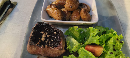 2 entrecôtes beaucoup trop cuites mais la qualité des produits était bonne et le resto s'est bien rattrapé sur l'erreur de cuisson avec un super sens du commerce. J'ai beaucoup aimé la transparence du serveur. Le cadre est plutôt joli (de nuit, le jour doit offrir une...
