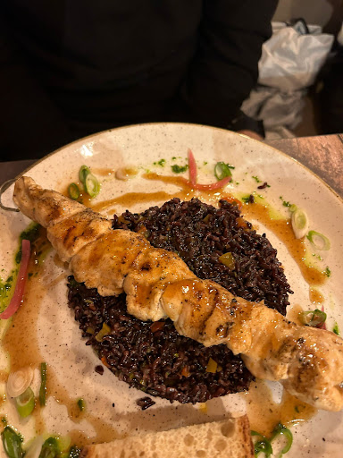 Read moreNous sommes venus diner à 4. Le cadre est très charmant, le personnel très sympathique et accueillant. Nous avons eu une très bonne recommandation au niveau du vin avec l'explication, à cela, rien à redire. De plus le vin était très bon. Le personnel a vraiment prit son temps pour nous. Concernant la cuisine, il n y a rien à redire, nous recommandons. Produits, quantité, présentation et prix très corrects. Nous avons pris l'entrecôte au beurre persillé, le Pluma Ibérique qui est une viande excellente et très tendre accompagnée de sa sauce barbecue qui se marie excellement bien, et le dernier plat était les brochettes de poulets sur son lit de riz à l'encre de sèche. Exquis. Les desserts sont également très bons. Je recommande ce restaurant pour la qualité de sa cuisine et...