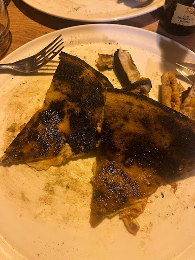 Pizza was not bad except for the fact it was totally burnt. 5 pizzas, 5 burnt. Minimum of 20€ for each pizza. We asked for one of them to be replaced (the most burnt was not eatable) but the waitress told us “it’s not burnt, it’s normal” (obviously in French, because she didn’t even try to talk some other language). She was pissed off from the first second we gently asked for a new pizza and only few minutes of arguing the pizza was replaced with a new one. During all our stay the waitress kept making fun of us with the other tables with French customers saying with loud voice “arrivederci”, “Italians here, Italians there” and other stupid things. We just stayed in our table enjoying the evening not considering the hostile situation that she built up around us. I never experienced this kind of situation in all my life. Just an advise: if you hate your job and to relate to foreign people just find other one. The photo is of one of the pizza we didn’t change. The other one...