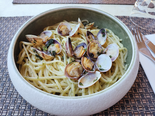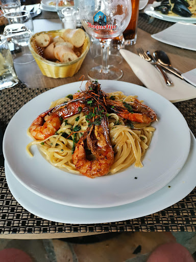 Read moreIch kann dieses Restaurant leider nur bedingt empfehlen, da wir unsere Erfahrungen als Hundebesitzer gemacht haben. Die Begrüßung erfolgte sehr nüchtern, als registriert wurde, dass wir zwei Hunde dabei hatten. Eigentlich wollten wir uns oben auf die Dachterrasse setzen. Diese war jedoch geschlossen. Dann überlegten wir, ob wir uns rein oder nach draußen setzen sollen. Diese Entscheidung wurde uns aber abgenommen. Im Ergebnis wurden wir in einen komplett anderen Bereich gesetzt. Hier wirkte es bistroartig und ungemütlich. Zudem saßen wir nicht wie erwartet mit Blick auf das Meer, sondern mit Blick auf die vor dem Restaurant parkenden Autos. Wir überlegten kurz, ob wir wieder fahren sollen, da wir aber Hunger hatten blieben wir. Ich fragte, ob ich ein Stuhlkissen bekommen könnte, da die Stühle, anders als im Hauptteil des Restaurants, hart und ungemütlich waren. Keine Chance, die gab es nicht! Wer vor hat, mit einem Hund zu kommen, sollte sich also besser ein anderes Restaurant aussuchen!
