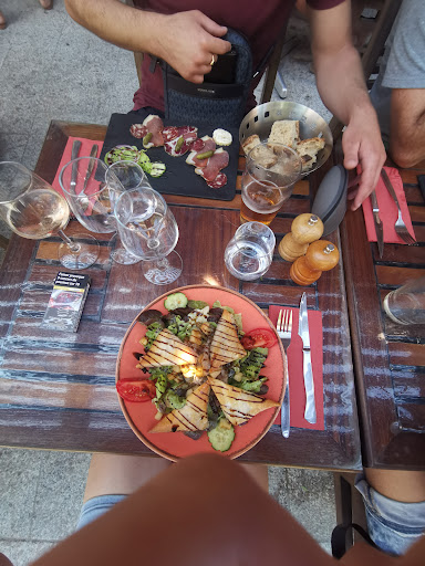 We were first to sit down in yet empty restaurant, as we thought let's give it a chance. Owner welcomed us kindly (can not say that for a waitress). After clearly explaining the waitress that we had trouble understanding her french (both of us speak fluently english and italian), she continued talking in french with us. I said ok no biggie. Orderd food and drinks, she started smirking as we ordered in english, I could bately finish my order she was already running away from the tale lime as she was scared of us. Called her again for an ashtray. Called her again for a sparkling water, the she started rolling her eyes. When our apetizer came she went out taking a photo of a sunset, totally ignoring us when i tried to call her to bring us some plates for starters. We fibished the main course and waited around 20 min for her to aknowladge me and take out the plates and bring us the bill. We were drink ing white wine on glass (8e per glass, of course). Restaurant had nice ambient, good live music, overall great place, but the waitress is killing that business. Please do find another job, this one is clearly too...