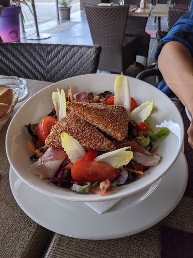 Un lieu très agréable où l'on a la possibilité de manger sous la vigne, en terrasse ou à l'intérieur quand la météo n'est pas au rendez-vous ou hors saison. Les trois possibilités sont très agréables. L'accueil y est très très chaleureux. Ici, on vous accueille avec le sourire et l'on est aux petits soins et de bonne humeur avec vous, ce qui fait énormément plaisir. La petite touche humaine qui fait aussi toute la différence. Alors question carte, on a quasi tout essayé. Les salades sont fraîches, copieuses et préparées avec soin et de bons produits. Les pizzas sont excellentes et très digestes. Et en ce qui concerne la viande ou le poisson, toujours très satisfaits par la qualité des produits et la jolie présentation. Très sympa aussi les suggestions. Côté boissons, l'on peut prendre sans hésiter le vin au pichet qui est très bon. Les desserts sont originaux, changent régulièrement et sont préparés avec soin ! Bref, de l'apéro au café, tout est excellent, le cadre magnifique et l'accueil très chaleureux. De plus, le rapport qualité/prix est vraiment très appréciable. On n'hésite pas à se faire plaisir ! Une adresse incontournable, même si elle est un peu en dehors des autres restos, n'hésitez pas une seconde. On n'y est jamais déçus. Bravo à...