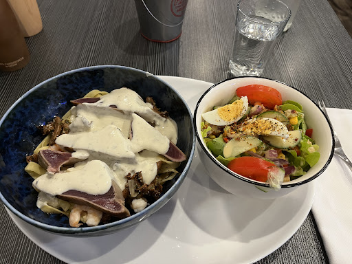 Read moreVi valgte dette spisested på en dagstur til Saumur. Forretten var fin (en klassisk salat med gedeost), og den ene hovedret (fish and chips) var også god. Desværre var den anden hovedret (marineret kød på spyd) helt og aldeles uspiselig, da den både lugtede og smagte af fordærvet kød. Vi gjorde tjeneren opmærksom på det, men hun insisterede, at det var marinaden. Hun sendte ikke maden tilbage til kokken eller gjorde mine til selv at lugte til det. Al kommunikationen foregik på fransk da hun ikke talte engelsk, og vi gjorde os umage på fransk. Det var tydeligt at vi ikke var trygge ved at spise det fordærvede kød og sendte også det meste af retten tilbage, men vi fik ingen alternativer tilbudt og endte med at betale for dårlig mad. Puha, en ærgerlig oplevelse. Kan...