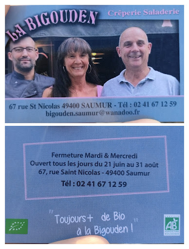 Read moreDe passage à Saumur, je n'avais pas prévu de réaliser un avis sur un restaurant. Après avoir lu la carte et voyant la quantité de plats, cela ne m'encourageait pas (Par expérience, trop de diversité, tue la qualité) mais j'avais vraiment une envie de "recette Bretonne". Mais, après une excellente dégustation et un service efficace, je reviens sur mes aprioris. Alors, arrêtez-vous, vous n'allez pas être déçu. Les galettes sont bien équilibrées, avec des ingrédients BIO qui ont du goût. Les équipes en cuisine et au service sont efficaces et souriantes. Avec un peu de curiosité, on peut même voir la réalisation des galettes et crêpes. Ils n'ont rien à cacher et peuvent être fiers de leur cuisine. Je n'ai malheureusement pas de photos de plats à présenter mais les galettes et les crêpes sont joliment présentées. Bravo à l'équipe...
