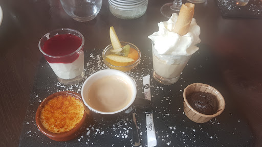 Read morePetite précision : un samedi midi donc repas essentiellement à la carte. Tout d’abord, je ne comprend pas tous ces avis 5 étoiles, aurait on oublié en France c’est qu’est la bonne cuisine ? Accompagnée d’un professionnel de cuisine, notre avis est plus que mitigé. Les plats sont corrects, mais pas à ces tarifs ! Surtout au vu de la quantité et diversité des accompagnements. Exemples : 6 calamars fris avec mayo industrielle « fait maison » pour 6,50e… Légumes de saison : frites ou pommes de terre ? Les sauces : sauce moutarde avec l’andouillette frites, sans goût de moutarde Sauce au thym avec la cuisse de canard confite pdt, sur une base de fond de veau en poudre On nous confirme, en étant étonné de notre question, que tout est fait maison, dans le pays où tout le fait maison est basé sur les sauces… Concernant les desserts nos cafés gourmand étaient bons et raisonnable niveau prix. En conclusion : est-ce qu’on sait encore...