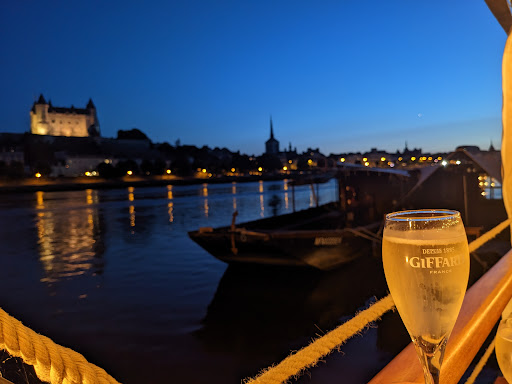 Fabulous location, average food, poor service. Trying to cram too many diners in makes each table a bit squeezed and uncomfortable. The starter was great - shared platter of smoked fish, meats and cheeses, but the main course was plonked on the table before starters finished. Unfortunately it was bland, under-seasoned and uninspiring. Our waiter was more interested in hugging his friends (locals?) as they arrived than actually serving other guests and we felt almost pushed out with the offer of coffee/tea. What happened to dessert? We'd ordered a bottle of wine so we stayed to finish it anyway. Our last night in Saumur, this picturesque and novel boat based restaurant held so much promise. Sadly it...