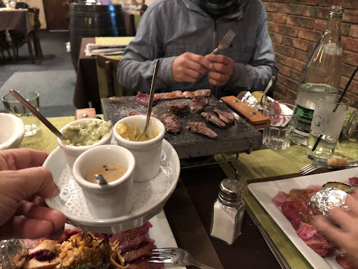 Read moreLe plaisir dans l'assiette! L'assiette de pierrade bien garnie, des accompagnements originaux, les sauces (photo 2 ) de la pierre chaude sont faites maison! une tuerie! les produits sont sélectionnés et frais, la pomme de terre au four est excellente, la viande est de très bonne qualité, la petite salade (photo 1 ) qui accompagne est une pure merveille, on en redemande!. Nous avons pu aussi nous libérer plusieurs midis ( nous sommes trop loin maintenant), un menu différent chaque jour est proposé où les légumes ne manquent jamais, la salade est toujours la bienvenue avec la petite sauce maison! Merci pour votre courage et votre ténacité, bravo pour votre bienveillance auprès de vos clients! Même à 1h30 de route on revient à chaque fois avec plaisir! Nous conseillons cette bonne table,...