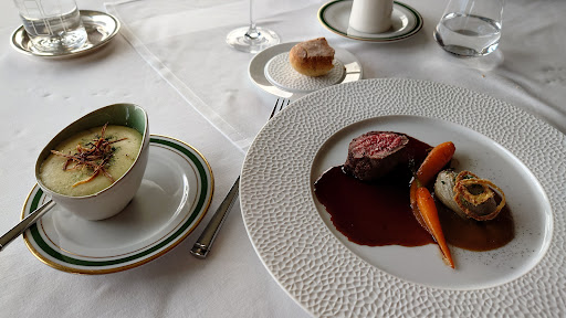 Une très belle expérience dans un cadre magnifique: ce restaurant est situé dans le très beau château du prieuré, superbement rénové et décoré dans le style empire. N’hésitez pas à jeter un œil aux salons. La vue sur la Loire est à couper le souffle: il pleuvait lorsque nous y sommes allés, et nous n’avons malheureusement pas pu profiter de la magnifique terrasse. Mais la salle du restaurant possède de très belles baies avec vu plongeante sur la vallée de la Loire: même sous la pluie, le spectacle est de toute beauté. L’accueil et le service sont efficaces et chaleureux. La cuisine est un délice, toute en subtilité: bravo au chef. Nous étions 9 à table, et aucun de nous n’a regretté les plats choisis, tous parfaitement réussis. Détails importants : d’une part ce restaurant est facilement accessible aux personnes à mobilité réduite, d’autre part, le chef pourra vous concocter un menu végétarien de qualité. Une adresse à conseiller sans hésitation, d'autant que le rapport qualité prix est tout-à-fait...