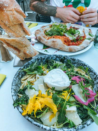 Food was great! Wait staff were a bit odd though. I get that they’re busy, but my friends who had eaten were not allowed to sit with us. They also just generally had a very odd and unwelcoming attitude towards us. If I wasn’t hangry I wouldn’t have stayed here. Thankfully our vegetarian dinner of vegetable pizza and pesto Burrata...