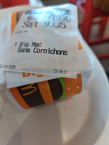 Read moreÉtablissement à fuir... à moins que ce soit toute l'enseigne au vu des commentaires qui signalent des problèmatiques récurrentes de respect des commandes, de quantité de produit abusivement faible, sans parler de l'hygiène... et constater que ces problèmes perdurent. J'ai malheureusement fait le même constat ce soir. Pour ma part, le plus choquant ce fut de constater la quantité de glace dans un Sundae et deux Mc Flurry... Voici ce que l'on nous a servi: = à peine la moitié du petit gobelet pour le sundae (d'ailleurs, le sachet de cacahuètes brisées, je l'attends toujours...). 3€86 = pour les Mc Fleury, à peine un tiers du contenant (un verre en plastique), soit la valeur de 2 cuillères de crème glacée. 2 x 4,40€ (Dommage de ne pouvoir ajouter la photo prise afin de vous montrer ce que vient de décrire) Au total, entre 5 et 6 cuillerées de crème glacée (et je suis généreux...) pour pratiquement 13€. Est-ce à ce point difficile financièrement pour Mc Donald's pour servir des quantités aussi ridicules à sa clientèle? Est-ce l'enseigne Mc Donald's qui donne des consignes pour faire des économies ou est-ce que ce sont les équipes qui sont radines avec la clientèle pour mieux profiter des produits ainsi économisés lors des pauses? Toujours est-il que je trouve honteux de prendre à ce point ses clients pour des pigeons! Je comprends mieux pourquoi les enseignes concurrentes prennent de plus en plus de parts...
