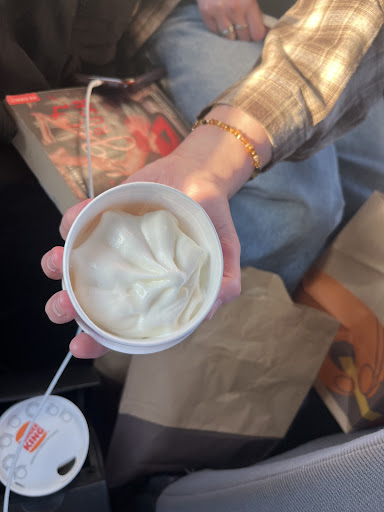 Nous nous sommes arrĂȘtĂ©s en cours de voyage en dĂ©but d'aprĂšs midi pour manger Ă 5 adultes et deux enfants sur la route des vacances. L'endroit Ă©tait propre et peu frĂ©quentĂ© Ă cette heure ci donc je ne peux pas juger de l'ambiance rĂ©el dans le cadre des heures classiques de repas. Nous avons Ă©tĂ© trĂšs rapidement servit Ă table avec une commande complĂšte, sans oubli, pour tout le monde. Il manque certaines indications concernant les produits comme le ''toastĂ©'' que nous avons goutĂ© Ă plusieurs oĂč le cĂŽtĂ© poivrĂ© et relevĂ© n'Ă©tait pas connu au moment du choix effectuĂ© Ă la borne. RĂ©sultat, un sandwich trop relevĂ© qui n'a pas su trouver preneur car trop intense et prenant le dessus sur tout ce qu'il y avait dans ce sandwich dit ''petite faim'' dommage. Un gĂąchis que nous n'avons pas apprĂ©ciĂ© de faire malheureusement. Les sandwich basique pour caler les petites faims restent un peu sec contrairement Ă ceux qui sont proposĂ©s dans certains menus. Attention de vĂ©rifier les extras payants que vous choisissez car pour les glaces, par exemple, le supplĂ©ments de coulis, n'a pas Ă©tĂ© respectĂ©. Je le note car nous n'Ă©tions que quelques clients et je pense qu'une attention dans des moments moins dense devrait ĂȘtre plus assurĂ© et vĂ©rifier. Dans le rush, l'oubli est possible et ce n'est pas un drame. L'Ă©quipe est rĂ©active quoi qu'il arrive en complĂ©tant les oublis oĂč autres erreurs humaines qui peuvent arriver en cas de charge de travail intense. Un peu dĂ©rangĂ© par certains comportements des Ă©quipiers qui ne disent mĂȘme pas bonjour et qui ont l'air d'ĂȘtre dĂ©rangĂ© lorsqu'on leurs posent la question du fonctionnement des couverts et autres tri Ă faire lorsque nous avons dĂ©barrassĂ©s nos plateaux dans les poubelles dĂ©diĂ©s Ă cela. Pour des personnes non consommateurs de fast food rĂ©gulier, les indications ne sont pas forcĂ©ment trĂšs clair et dans les deux cas, c'est dommageable. Cependant Nous avons Ă©tĂ© servis en salle par une jeune femme adorable et Ă l'Ă©coute. Gros avantage lorsque vous avez des enfants et durant les grosses chaleurs oĂč nous cherchons tous un peu de fraicheur, l'espace jeu est existant Ă l'intĂ©rieur du restaurant au frais. Sans ĂȘtre dans une climat excessive, oĂč la sortie en devient trĂšs Ă©touffante de part le contraste parfois, c'Ă©tait une fraĂźcheur modĂ©rĂ©e qui restait agrĂ©able et oĂč nous n'avons pas eu de choc de tempĂ©rature en sortant et c'est important de le notifier pour les personnes fragiles, qui peuvent subir le contraste de maniĂšre trĂšs violente en sortant d'un restaurant trop climatisĂ©. Les toilettes et la salle Ă©tait propre et ce fut une belle surprise, surtout concernant les sanitaires qui sont parfois bien trop nĂ©gligĂ©s. Burger Kong reste une chaĂźne qui contrairement Ă d'autres, ne gĂ©nĂšre pas de faim deux heures aprĂšs seulement. Je trouve les burgers copieux et de meilleure qualitĂ©s tant sur le choix des produits que la cuisson de ceux ci. Un drive est disponible Ă©galement et le parking Ă l'arriĂšre permet de garer sa voiture assez facilement car il est de taille assez grand et suffisant. Accessible aux personnes Ă mobilitĂ© rĂ©duite sans difficultĂ©s, mĂȘme pour les sanitaires. Les fauteuils roulant peuvent circuler de maniĂšre assez fluide. Bref un lieu pour tous, oĂč les enfants peuvent ĂȘtre sous surveillance facilement et c'est agrĂ©able. L'expĂ©rience fut agrĂ©able dans sa globalitĂ© et bien que je puisse concevoir la fatigue des Ă©quipiers aprĂšs un service peut ĂȘtre important, je pense que la politesse d'un bonjour ne coĂ»te rien bien que cela ne concerne pas tous! J'y retournerai si je devais me trouver dans les parages et j'espĂšre que mes annotations permettront d'amĂ©liorer certains petits aspects qui ne me permettent pas de mettre 5 Ă©toiles. Nouvel essai Ă faire Ă l'occasion. Question Ă laquelle je n'ai tout de fois pas de rĂ©ponses c'est l'indication de la propretĂ© rĂ©elle des ustensiles rĂ©utilisables qui Ă©taient assez usĂ©s... C'est quelque chose qui m'a un peu rebutĂ© lorsque j'ai vu mon gobelet de boisson assez blanchĂątre. Certainement dĂ» au calcaire mais... Je doute et n'affirme pas que c'Ă©tait sale...