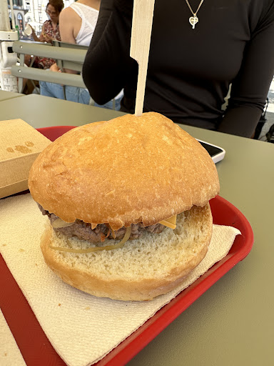 Delicious burgers, yummy fries and a very quick and friendly service with a smile. Can eat there if good weather and warm outside or take away.