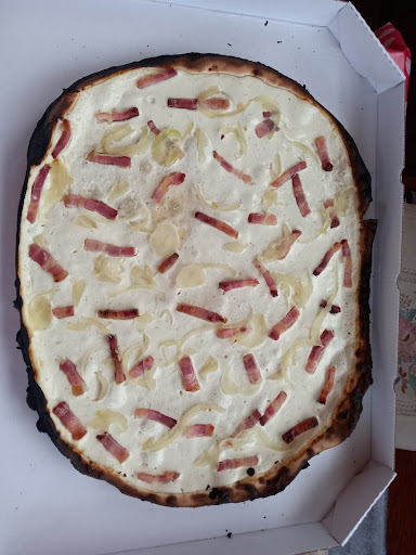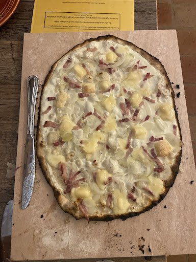 Par ou commencer... Apéritif normal. Nous demandons 1 petite pizza SAUCE TOMATE JAMBON GRUYÈRE sans champignons pour le petit de 7ans on nous ramène 1 PIZZA AVEC DES OLIVES NOIRE, BROCOLI POIVRONS ET PERSIL nous l'avons bien sur refuser chose qui ne leur a pas trop plu! Pour nous nous commandons une tarte flambée exclusivement de LARDONS SANS OIGNON impérativement, au bout de 10 minutes on nous ramène une TARTE FLAMBÉE MOITIÉ NATURE et MOITIÉ AVEC OIGNONS nous la refusons celle ci a été refaite ! Pour la deuxième tarte flambée nous demandons une forestière gratinée sans oignons la serveuse nous dit que chez eux ça s'appelle une gratinée champignon ! Je lui ai dit qu'elle chipotait un peu sur les mots elle me dit que non c'est comme ça au moment de nous ramener cette deuxième tarte flambée on se rend compte qu'il y a aussi de l'ail et du persil sur la tarte flambée chose que je n'ai jamais vu, nous ne mangeons même pas la moitié celle-ci étant énormément chargé d'ail du coup nous avons demandé une autre tarte flambée gratiné champignon sans ail sans persil sans oignon on nous ramène une tarte flambée juste avec des champignons et ils ont salé encore le dessus de la tarte flambée qui était alors presque in mangeable mais quel déception Les 2 serveuses complètement perdu avec 6 tables Desserts basic sans plus, café et l'adition 69e pour un repas juste raté du début à la fin Vraiment dommage parce la pâte faite maison est très bonne et le cadre et déco est très agréable Donc à éviter dans la...