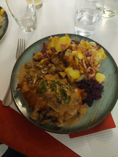 Read moreUn super resto alsacien ! Nous avons réservé une table de 15 couverts entre amis pour l’anniversaire de mon conjoint. Nous étions bien placé à l’avant du restaurant dans un coin assez calme mais tranquille pour pouvoir y mettre les poussettes en bout de table. Une mention spéciale au serveur qui était vraiment très agréable, au vu du nombre de personnes il était très organisé et ne s’est pas agacé s’il y avait du bruit ou une incompréhension dans la commande. De plus il m’a conseillé personnellement sur un vin blanc et effectivement j’ai apprécié ce choix. Les plats sont bon et copieux ! Le grand plus tous les desserts sont fait maison ! (Sauf les glaces, mais elles viennent d’un petit producteur d’à côté on peut les excuser !) Le tarif est correct 65 euros pour deux plats dessert et deux bières ! Tout est fait maison, Je conseille: La tarte flambée qui est excellente et le cordon bleu Le banana split et le fondant au chocolat ! Mon nouveau fav du...