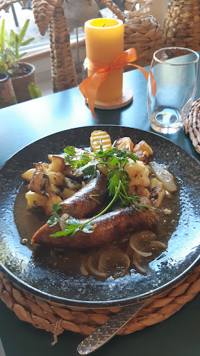 Read moreRĂ©servĂ© pour un repas en famille aprĂšs une cueillette de champignons, nous sommes arrivĂ©s Ă 12:00 au nombre de 8 adultes et 6 jeunes enfants plus trois chiens đ±. Pour une premiĂšre dans ce restaurant ce fut une bien heureuse dĂ©couverte, accueil particuliĂšrement chaleureux par la propriĂ©taire face Ă lâinvasion de nos six petits-enfants, dĂ©couverte dâune carte restreinte garantie de fraĂźcheur et de fait maison, mais oĂč chacun trouvera son bonheur (nous Ă©tions accompagnĂ©s de deux vĂ©gĂ©tariennes). Nous avons apprĂ©ciĂ© lâensemble des plats joliment prĂ©parĂ© et particuliĂšrement dĂ©licieux (entrecĂŽte aux Ă©chalotes, rognons de veau, steak tartare et lâĂ©tonnante potence de gambas et chorizo sans parler du menu enfant qui fut unanimement apprĂ©ciĂ© par les plus jeunes convives). Un service attentionnĂ© et beaucoup de bienveillance avec les enfants fit de ce dĂ©jeuner un trĂšs bon souvenir. Ă conseiller sans restrictions aucune et nous y retournerons...