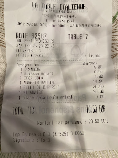 Nous avons eu le droit Ă la mĂȘme question Ă la caisse (presque 300 euros tout de mĂȘme). Avons tenus les mĂȘmes propos, déçus dans l'ensemble et surtout par le plat principal.