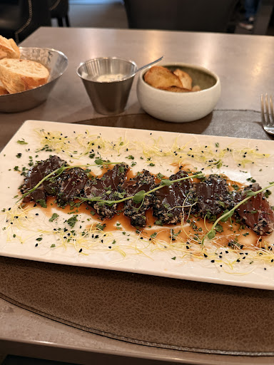 4 étoiles pour le travail des serveurs, le joli cadre du resto et pour les quantités servies, le bon Martini blanc, pour le plat que nous avons dégusté : "côte de porc, réduction sauce cerise". Ce plat est vraiment délicieux et je le recommande. Nous nous sommes régalé.