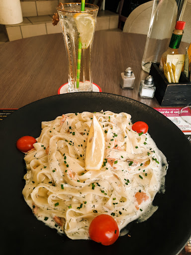 AprĂšs ĂȘtre entrĂ© dans cette brasserie, on est agrĂ©ablement surpris par un dĂ©cor avec, au fond, un mur de pierre apparentes. Dans le prolongement, on dĂ©couvre une petite salle feutrĂ©e oĂč il est agrĂ©able de prendre place. L'accueil est chaleureux, on a une clientĂšle d'habituĂ©s signe de bien manger. C'Ă©tait pour nous un plat sur le pouce et nous n'avons pas Ă©tĂ© déçus J'ai testĂ©, comme Ă l'accoutumĂ©, le tartare. La portion est gĂ©nĂ©reuse, trĂšs bien assaisonee avec les cĂąpres et le jaune d'Ćuf qui va bien. J'insiste sur ce point car neuf fois sur dix, ce n'est pas le cas Il est mentionnĂ© sur l'ardoise frites "maison", c'est bien le cas ici avec deux bains de cuisson. Pour mon Ă©pouse, le plat du jour : brochette de poulet cuite Ă point et une Ă©norme pomme de terre au four avec sauce Ă la ciboulette. Aucune dĂ©ception quant aux plats commandĂ©s ; il faut venir ici quand on est pressĂ© car le service est...