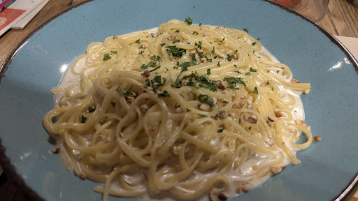 Read moreWas op zoek naar een italiaans testaurant. Kwam deze tegen op het Centre Commercial, niet de plaats waar ik het zou verwachten. Werken met een pas en piepersysteem. Je besteld met je pas aan een balie zodra je er aan toe bent. Je krijgt een buzzer mee die af gaat zodra het voor je klaar staat. Personeel zeer behulpzaam en vriendelijk. Zelfs tegen zo'n stomme tourist als ik die te weinig Frans kan spreken. Het eten was erg lekker. Wij hadden voorgerechten besteld; diverse italiaanse kazen, bruchetta en een italiaanse tomatensoep. Stuk voor stuk zeer smakelijk! Voor hoofdgerecht kozen we drie verschillende pastagerechten. Ook weer zeer verrukkelijk. De hoeveelheden waren fors, veel waar voor je geld! Toetjes: heerlijk. Mijn tip? Neem de Tiramisu met speculoos. Omgeving/ambience: relaxed en zeer informeel / easy. Erg prettig.