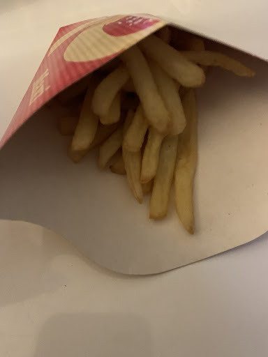Et enfin la nourriture est déplorable je suis un grand consommateur de fast food et c’est sûrement le pire burger de ma vie, une semelle, impossible de soulever le pain pour retirer le cornichon. Ensuite le « long bacon » qui fait la taille de mon indexe et qui est moins épais que mon téléphone, des potatoes froide avec du cheddar mais sans fourchette, une grande boisson remplis à moitié avec plus de glaçon que de boisson et enfin des churros froid et sans sauce chocolat donner en même temps que les frites comme si on allait les manger en même temps.