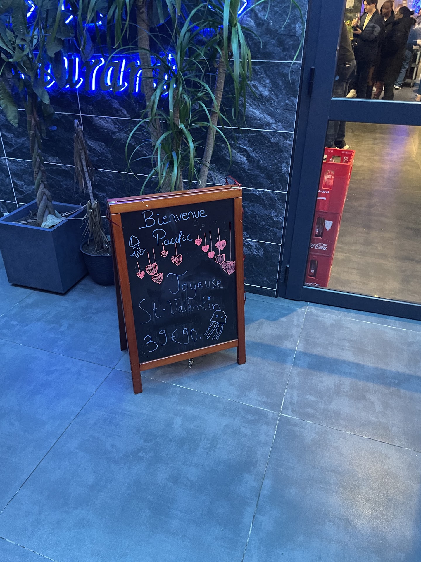 Read more‼️ Attention ARNAQUE !! ‼️ Nous nous sommes rendus avec ma femme et mes 2 enfants pour la soirée de Saint-Valentin donc le 14 février pour un fêter anniversaire et quelle surprise nous avons eu ce jour là ! Après l’attente de plus de 30 minutes dans les courants d’air de l’entrée, on vous annonce juste avant de vous placer à la table que pour cette soirée du 14 février le menu passe de 27.90€ à …. 39.90€/personne !! Stupéfaction à un tel point qu’un groupe de jeunes de 7/8 personnes derrière nous n’ont pas acceptés et sont ressorti après plus de 30 minutes d’attente à l’entrée c’est une honte ! La justification du vigile et de la serveuse : c’est stipulé à l’entrée sur une vieille pancarte invisible et qui ne veut absolument rien dire, je vous met la seule pancarte qui annonçait cela en photo pour preuve que le message affiché dessus est complètement incompréhensible. Dommage car le service est top et la nourriture est plus que correcte avec une variété énorme, il y en a pour tout les goûts (végétariens, Halal…etc).