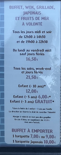 an all you can eat buffet that offers plenty of options either you're into deep fry food, veggies or meat. It ranges from saucisson, raw ham, self service serrano to an opened kitchen where the sushi guy, the grill guy and the woke guy cook back to back. japanese makis are assembled on the spot and served behind a glass. Customers are well behaved and i have not witnessed any wasting. And of course the regular dishes in sauce and fried everything you will also find dumplings (from frozen obviously) and Miso soup. the place is a little cramped : i don't recommend coming...