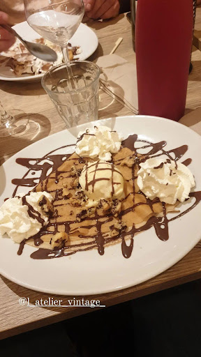 En séjour d'un WE sur Sens en amoureux, nous recherchions un restaurant avec cadre sympathique et nous avons découvert par hasard l'atelier Vintage qui pour nous motards donnait le ton dès l'entrée dans le restaurant avec une magnifique motoconfort exposée et une déco vintage superbe. Les planches apéro sont bien garnies et charcuterie de qualité, ensuite nous avons pris une salade pour madame et un burger pour moi et c'était un régal pour les papilles, le mont d'or chaud pour les frites un délice et pour finir une crêpe spéculoos avec caramel maison idéal pour finir un bon repas. Nous avons vraiment passé un bon moment dans ce magnifique établissement ou l'accueil y est très chaleureux. Au...