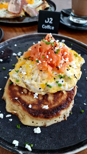 Stopped in for lunch. We were promptly greeted and seated. The menus are online so you have to scan the QR code. We ordered 2 lattes, one iced and one hot. Both came iced, so a little disappointment for my husband but he’s pretty easy so he didn’t say anything. I ordered the tacos and he got “The Sandwich”. The tacos were good and if they would have had a little hot sauce they would have been great. His sandwich was really big. It has steak on it which was pretty raw. He likes his steak rare but this was really rare. But he ate half of it and was satisfied. Definitely stop in and give them a try. We don’t speak French (we try but it’s not great) and the staff were super accommodating. What a gem to find on...