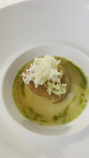Amuse buche We got asparagus cannelloni, buffalo mozzarella and zaatar. It didn't taste like buffalo mozzarella but the taste was good. Was nice and light.