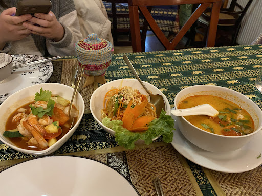 We got here right as they open at 7pm and we're the first ones there. The waitress greeted us and brought us the menu. The food took a while to come. We ordered Tom yam seafood soup and fish tom yam with fried rice, sauté beans spouts and plain white rice. When to soups came, the lady had to stir it to see which is which and realized that mine was chicken and NOT fish like ordered. She then took it back to the kitchen and several minutes later came back with the right order. The reason for a 3 star for food; is because not only she brought the wrong order, it was so salty on top of that, I couldn't eat it with pleasure, I more like force myself to eat it as the price is not cheap. My husband's soup was taste as expected, though we asked for very spicy, it was not, but still the taste was good. I am very disappointed on my soup...:( The restaurant is very nice and clean, so is...
