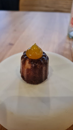 The food and service in general are very good. It’s a prix fix, surprise menu, so you don’t really know what you’re going to get. The 4 plate option is 59€ and with that comes small portions of an appetizer, a fish entree, a meat entree, and a dessert. You can do a 3 course wine pairing (or more), which was a reasonable price (€20). The meat entree was an excellent duck breast. The fish entree (monkfish) had a very sweet vanilla scented purée which was overpowering imo. My main gripe is related to my conversations with the waiter. I was considering buying a bottle of wine and I asked if he could recommend one of the maceration (i.e. natural) wines by the bottle out of the 4 options. He seemed annoyed and was like obviously the most expensive one is the best. He didn’t elaborate any more. I doubt the person who curated the wine list would think that’s the best way to describe the choices. I’m sure he’s right, but still! I decided to just get a glass of orange wine before the wine pairing and I pointed to the one option available by the glass. He said ok. He then returned with a cheaper glass of orange wine than the one I had asked for. I told him that’s not what I ordered. (Again, there’s only one orange wine by the glass so I didn’t need to be a detective.) He feigned confusion, looked at the menu to check the list of one orange wine, and agreed that he had indeed brought me the wrong glass. He corrected it and brought me the right one. The labels were not even remotely similar. Anyway, that left an unpleasant dynamic for the rest of the meal. I would not...