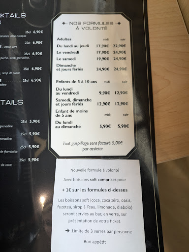 Read moreNiveau cuisine c'est pas mal avec un buffet assez varié, cependant un gros bémol et pas des moindres sur les gestes barrières notamment en cette période de pandémie. Beaucoup de clients se servent au buffet ou se lèvent sans masque, les distanciations ne sont pas respectées tant entre les tables que debout. Il serait bon de rappeler que lorsque le masque n'est pas porté, la distanciation entre chaque personne à table doit être de 2 m, sauf si une paroi fixe ou amovible assure une séparation physique (ce qui n'est pas le cas). Les gens se croisent, se frôlent même, en raison du manque de places. Il est bon de rappeler qu'en cas de non-respect de cette mesure, les contrevenants s’exposent à une amende de 135€ sans compter l'amende encourue et la fermeture temporaire de l'établissement. Il faudrait baliser un sens de circulation autour du buffet et également je trouve un manque d'aération de la salle. Les employés et la direction devraient vraiment être attentifs et rappeler les clients à l'ordre lorsque ceux-ci ne portent pas le masque au-dessus du nez. Je ne cherche pas à critiquer, au contraire, la nourriture y est bonne et l'établissement est beau. Le service est correct mais je vois plutôt ma remarque comme des conseils qui devraient être pris en compte afin d'éviter de créer des cluster et de revoir partir à la hausse les risques de...