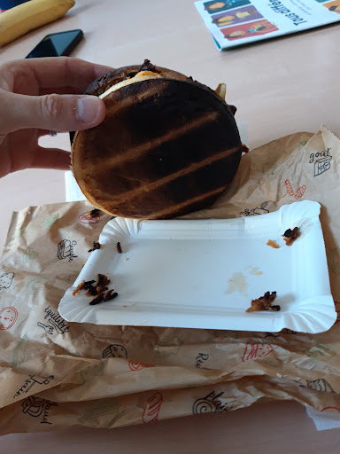 SUPRISE en retournant au bureau : mon burger était carbonisé... (cf : photos ci-jointes)
