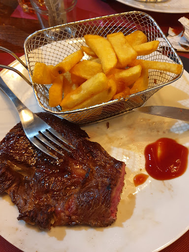 Don't go to this restaurant. The best thing we had there was the bread, made at an outside bakery. The second best thing was the iced tea, made by Coca Cola.. I asked my Entrecot medium and it came completely Raw. I should have taken a picture to really show how RAW it was because from this one it looks really good. It was not. There was only about 1mm of slightly cooked meet and then cold, raw meet. I pointed out the error and they took my plate and refried the stake and somehow decided it was a good idea to fry the fries again..... Oh my God. The thing became completely hard and terrible. But even cooked to perfection the piece of meet was full of connecting tissue that is just inedible. For sure a very cheap piece of meat. I paid 12 Euros for it and I would honestly would pay 5 euros to not eat it. Maybe the worst piece of meat of my life and top 5 worst fries of my life combined. That is an achievement of mediocrity. Service was friendly, but...