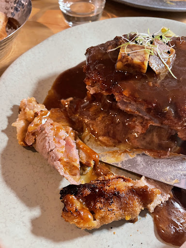 Une très belle découverte grâce au Passeport Gourmand. Un lieu atypique (en cave) avec une décoration soignée. Nous avons beaucoup apprécié le service car les serveurs et serveuses étaient vraiment sympa et accessibles. Nous avons pu donner notre commande rapidement et avons reçu les plats dans un délai raisonnable ; nous avons opté pour les fameux cordons-bleus qui font la réputation du lieu. Les recettes proposées étaient tous alléchantes et nous avons opté pour l’irlandais et le truffé, pas de déception. Cependant, les accompagnements proposés étaient un peu moins succulents, notamment les spaetzles qui étaient peu cuites. Mais qui peuvent convenir à d’autres palais. Les pommes de terres sautées avec lardons étaient bien cuites mais il manquait un peu de jus, mais rien de grave puisque la sauce du cordon bleu rattrape ! Nous avons apprécié le pain à disposition pour saucer l’assiette. Il y a la possibilité de repartir avec un doggy-bag, très appréciable car les cordons bleus sont de belles bêtes :) Et qui permet de craquer pour un dessert, nous avons partagé une coupe glacée Brookie ! Un vrai régal pour finir le repas.