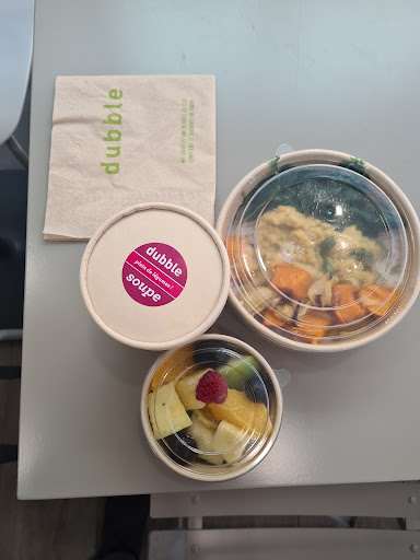 Read moreUne très belle adresse à tous points de vus, tout d'abord, lors de ma toute première commande via Deliveroo un dessert m'a été offert ainsi qu'une carte de remerciement (une carte à planter avec des graines intégrées) ce qui reflète totalement l'image de DUBBLE dans la générosité et l'originalité des plats préparés HOME MADE. Pour ma deuxième commande, je suis tout aussi satisfaite c'est une des seule et rare adresse à proposer DE VRAIS PRODUITS FRAIS, SAVOUREUX, BONS et HEALTHY !!! Que ce soit la soupe maison, les plats, les desserts et mêmes les jus de fruits frais !!! BRAVO à vous pour ce beau Concept !!! (en photo Le Poke Bowl Classique Saumon et Le BeautyBowl by Dubble...désolé pour le coup de cuillère sur la photo, ma gourmandise à pris...
