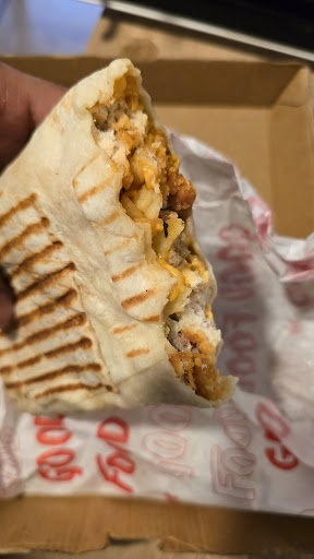 I came here because I was staying at the Airbnb across the street. I saw all the great reviews and wanted to check it out. I got the tacos, which the employee recommended, and they had fried tenders, egg, fries, and bacon. I also got mozzarella sticks and onion rings. The tacos were seriously delicious and filling. Now I get why they have such good reviews! The mozzarella sticks and onion rings were just okay, but they had tons of different sauces. My order was ready in like three minutes, just like they said. The employee was super nice, even though I don't speak French. He even gave me a free cookie, which was the best part! It was buttery, soft, and amazing. I'm definitely coming back when I'm in...