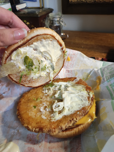 Mais la véritable horreur est survenue quand j'ai regardé le burger que j'avais commandé : le pain était moisi. Oui, vous avez bien lu, du pain moisi dans un restaurant de cette taille, c'est tout simplement écœurant. J'ai de nouveau dû retourner vers la caisse, où la dame, qui semblait être la responsable, m'a accueilli avec beaucoup de professionnalisme, elle semblait par ailleurs elle même choquée, mais malgré son jeune âge elle a gérer la situation , et m'a proposé un remboursement et a dû encore une fois s’excuser.