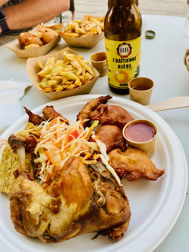 Ambiance chaleureuse et conviviale devant la brasserie perle, je me dirige vers le food truck qui propose des plats haïtiens et me décide pour un plateau de friture mixte, et j’ai été vraiment déçu, plantain sec et donc immangeable (sûrement datant de plusieurs jours) beignets sans saveur, chausson correct mais rien d’exceptionnel, même le poulet est sec et peu assaisonné … en bref je suggère de mettre autant de cœur en cuisine que au service et de ne pas faire trop de préparation à l’avance car les fritures servi froide et probablement datant de la veille ce n’est pas très savoureux …